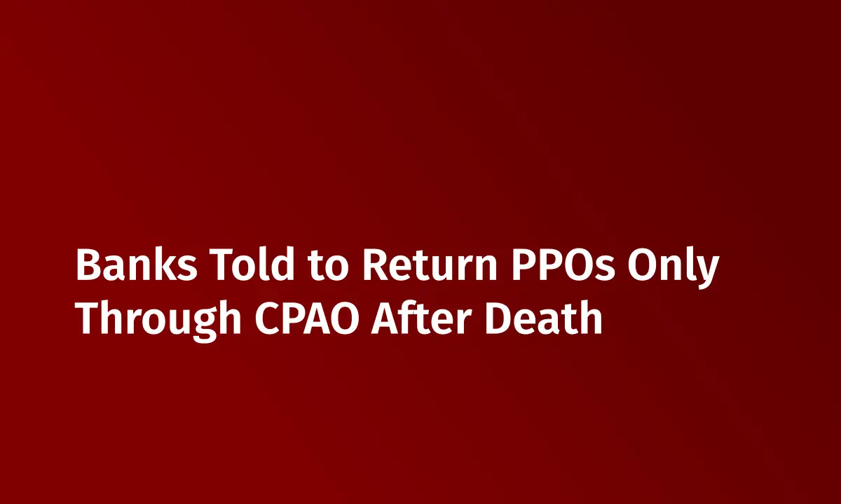 CPAO warns banks against sending PPOs directly to PAOs after a pensioner’s death. Non-compliance will invite strict action.