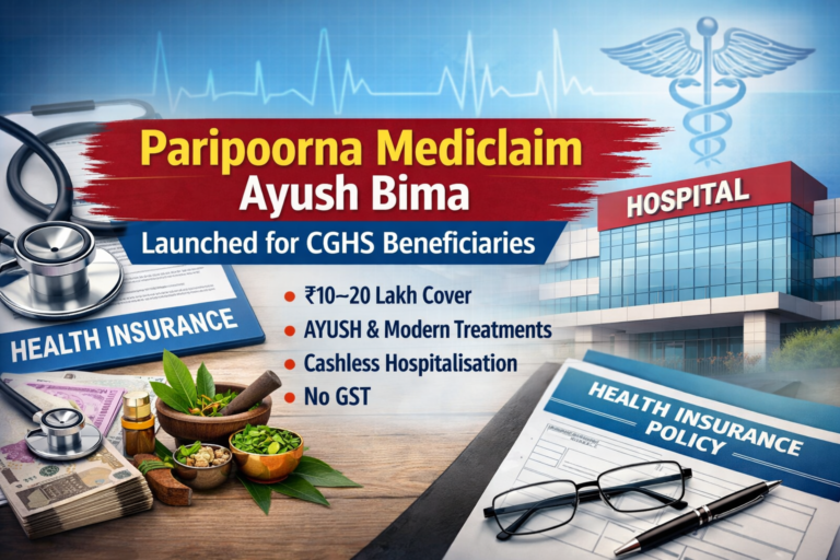 New Optional Health Insurance “Paripoorna Mediclaim Ayush Bima” Launched for CGHS Beneficiaries January 15, 2026January 16, 2026
