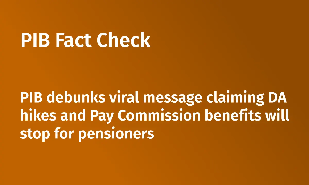 A message circulating widely on WhatsApp suggesting that retired Central Government employees will stop receiving Dearness Allowance (DA) hikes and Pay Commission–linked benefits under the Finance Act 2025 has been declared entirely fake by the Press Information Bureau (PIB).